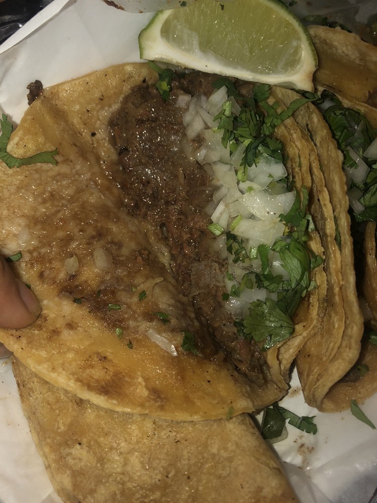 3pcs. Tortillas folded and fried crisp, seasoned fillings and topped with cheese, onions and sauce.